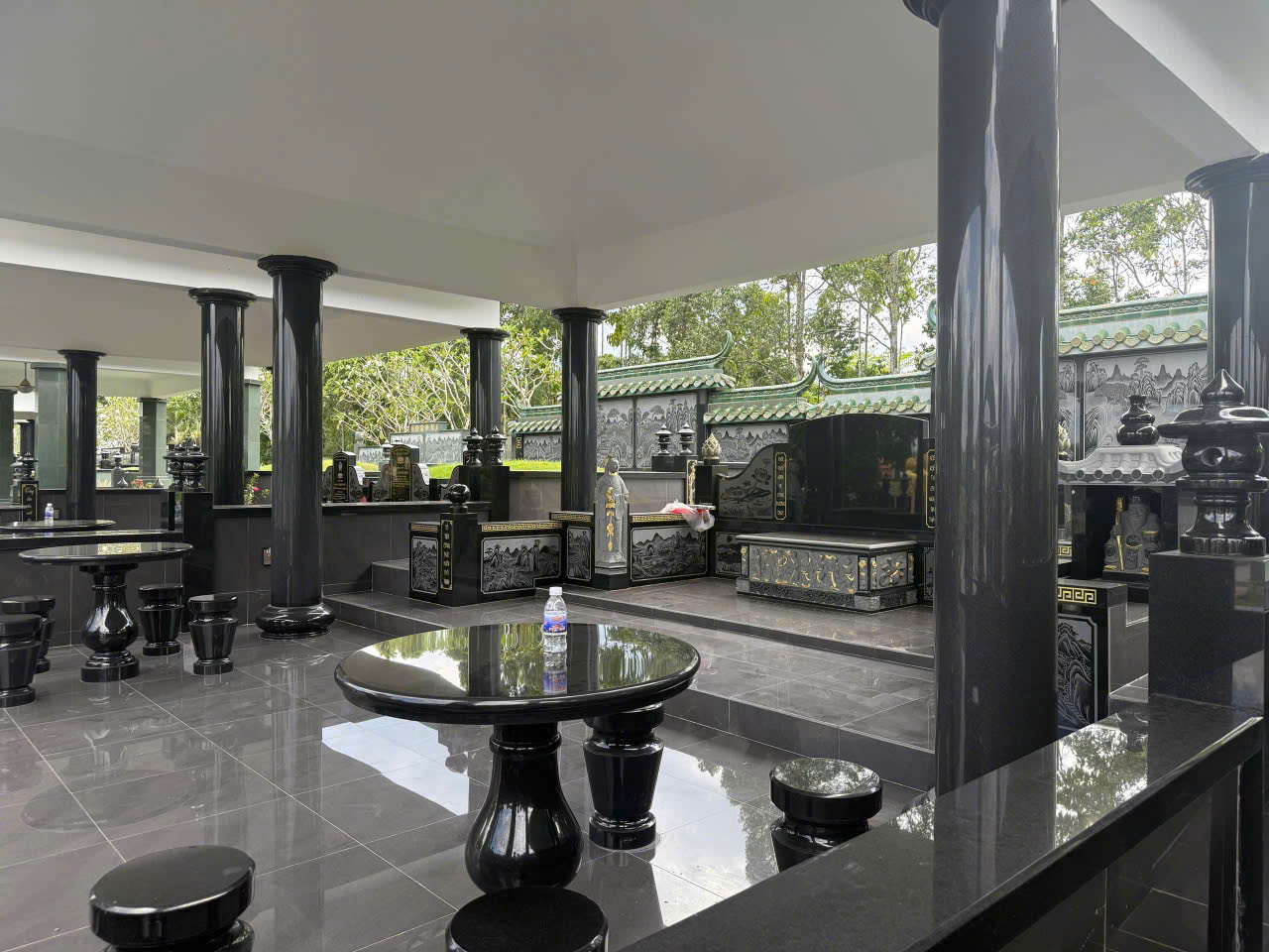 Bao quanh khu mộ là những thảm cỏ xanh mướt, những hàng tùng bách xanh tươi và các tiểu cảnh hồ nước, cầu đá. Không gian nơi đây giúp người đến thăm viếng cảm thấy tâm hồn nhẹ nhàng, như đang đi dạo trong một công viên sinh thái thanh bình.